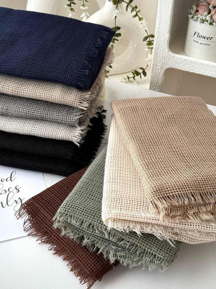 - شالهای پاستلی (آبی آسمانی، صورتی پودری): این رنگها برای فصول گرم و استایلهای لطیف مناسباند و با جین آبی روشن هماهنگی ملایمی دارند.