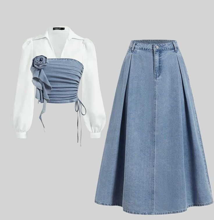 برای دامن جین بلند، بلوزهای جذب مثل یقهاسکی یا تیشرتهای ساده در تابستان و بافتهای نازک یا شومیزهای پارچهای در زمستان مناسباند. رنگهای خنثی یا متضاد با جین و کفشهایی مثل بوت یا کتانی استایل را کامل میکنند.