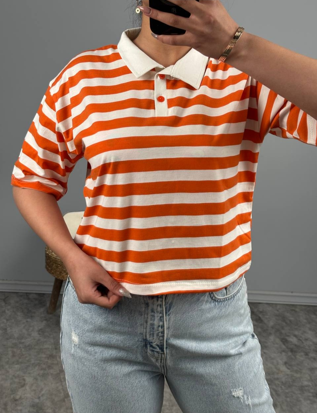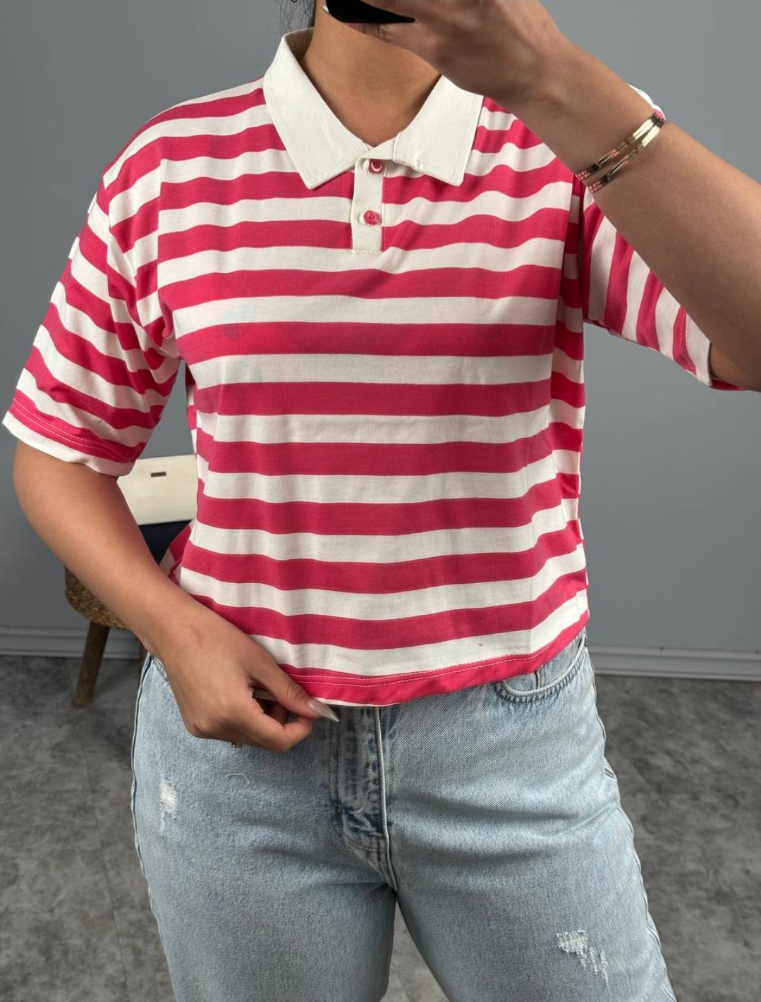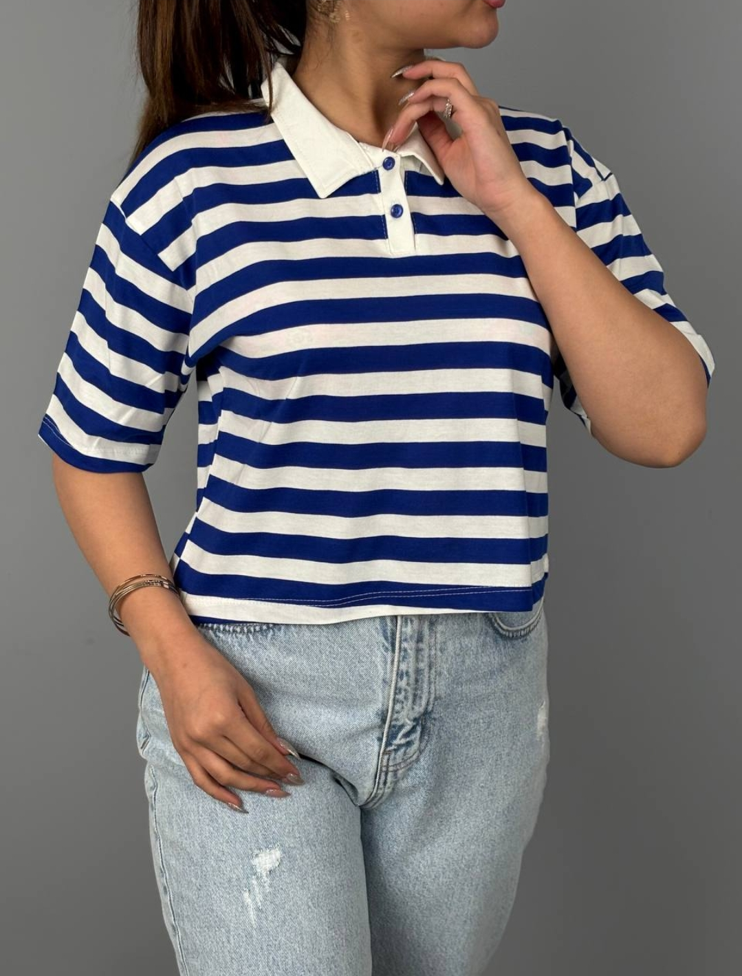کراپ یقه دار راه راه