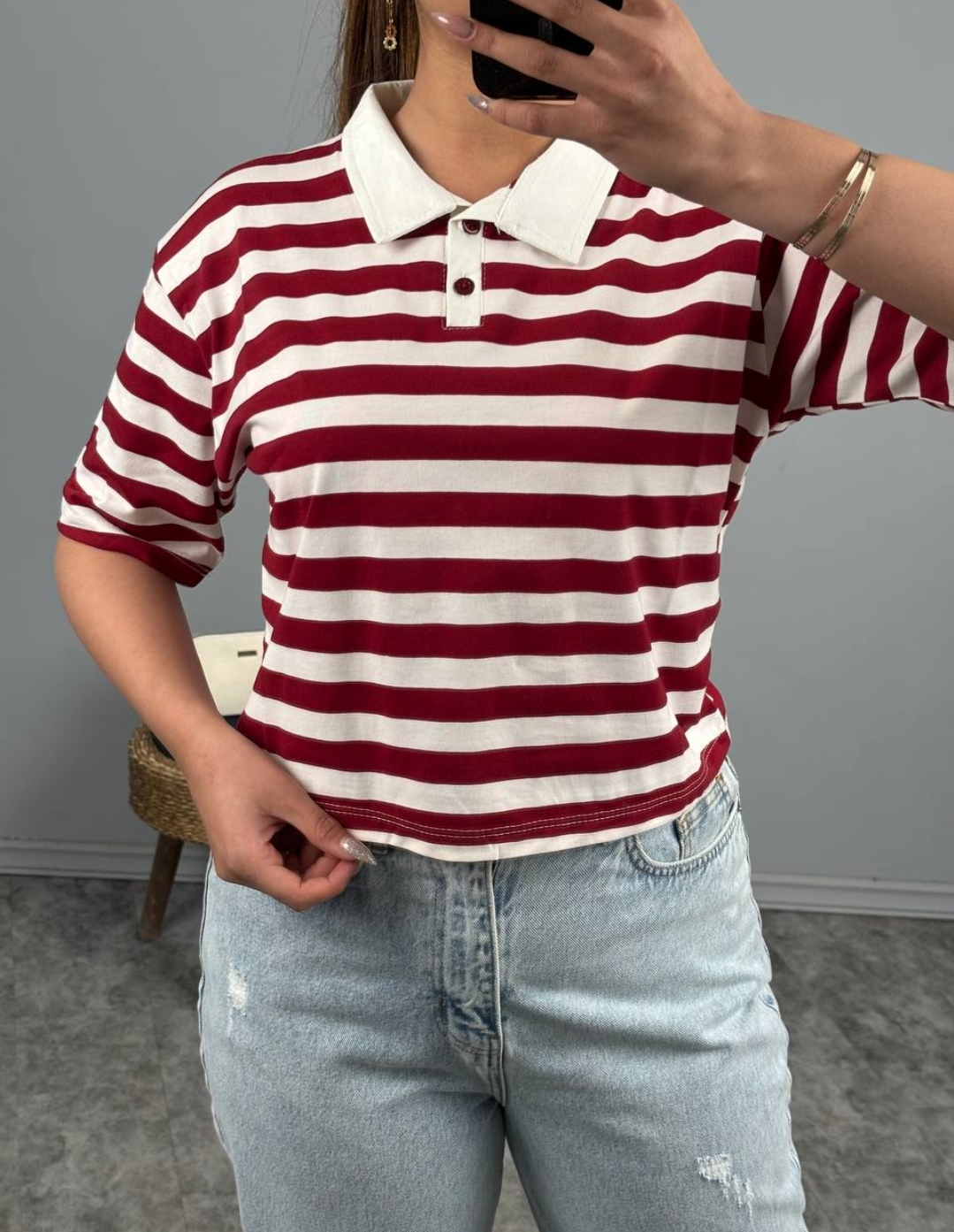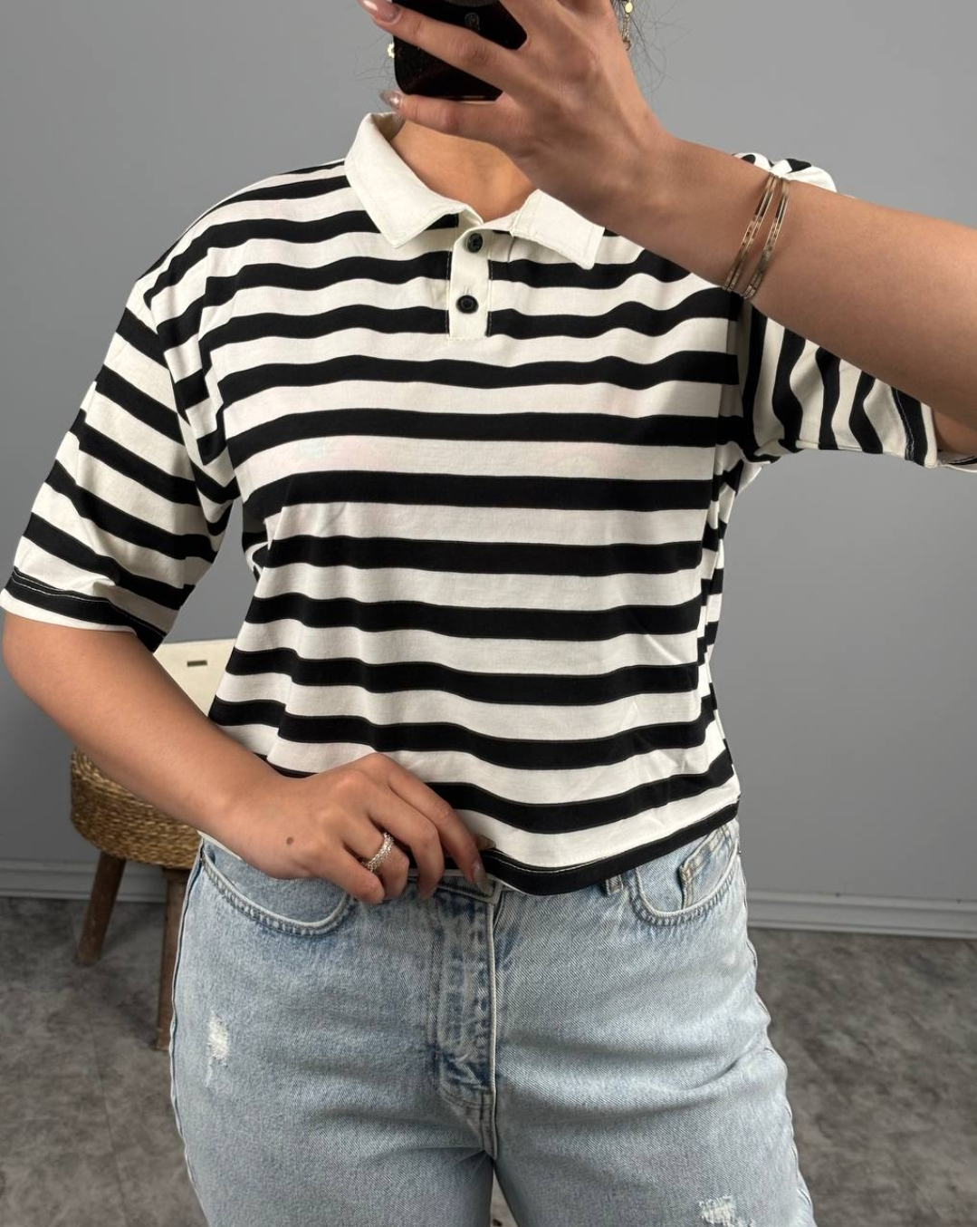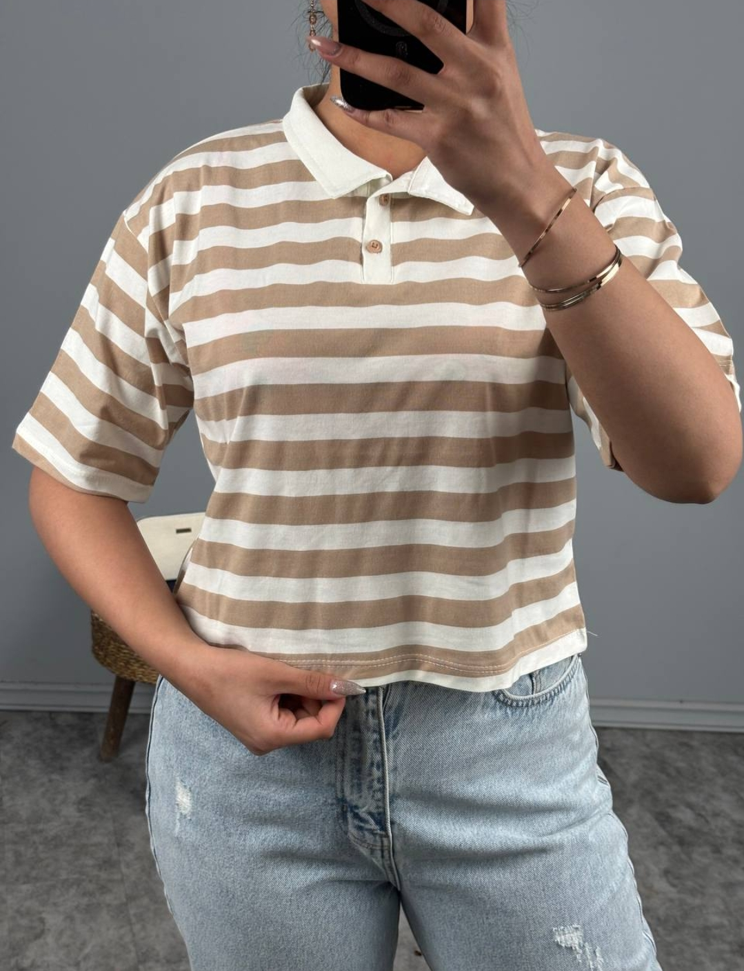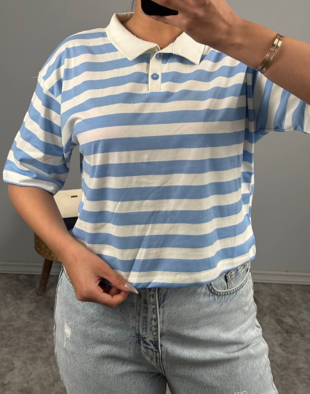کراپ یقه دار راه راه